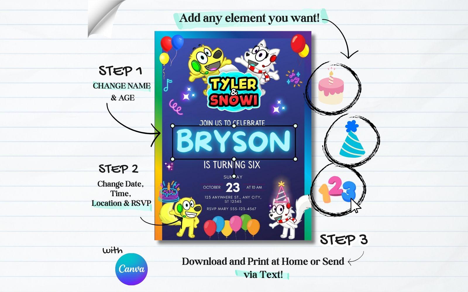 -Customize the invitation details: name, age, party date, location, RSVP info